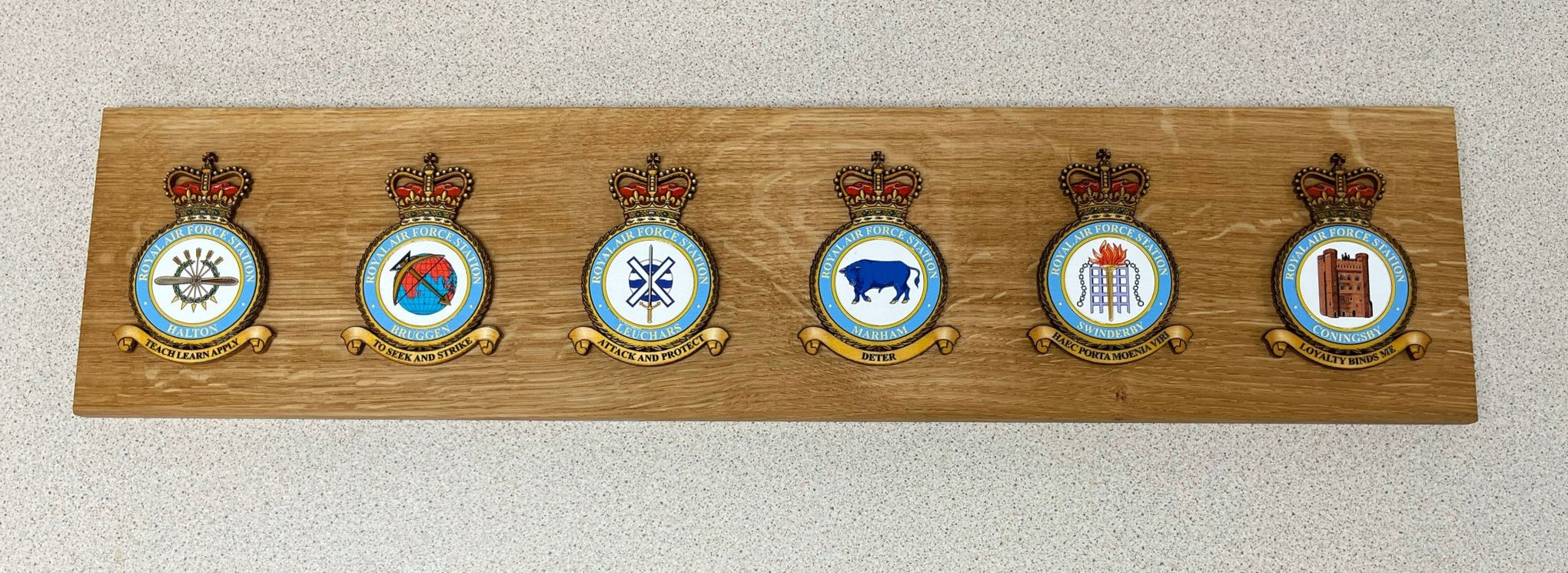 ♻️ The wood is made from recycled solid oak which is treated with linseed oil. The heraldic badges are then laser cut from a separate piece of wood and printed using the latest technology