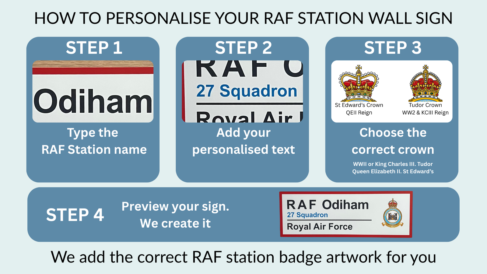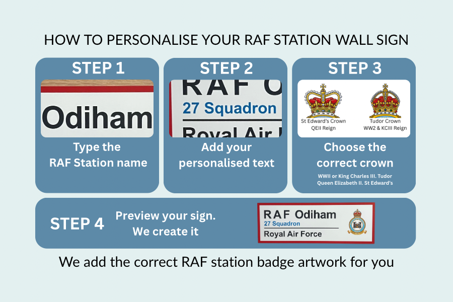 Choose any RAF station, past or present. Each sign is personalised and made to order, including stations that are no longer active.